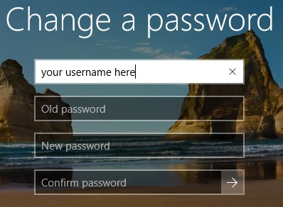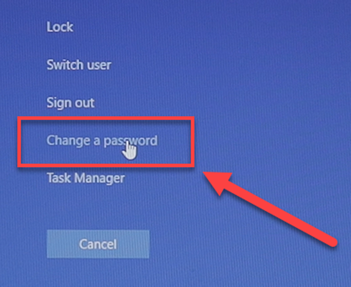 - Press and hold the CTRL+ALT+DELETE buttons together, release and click on change password.