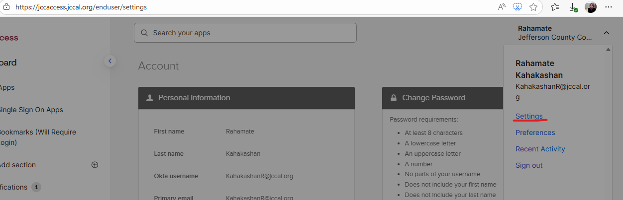 choose Organization. Enter your organization URL: https://jccaccess.jccal.org