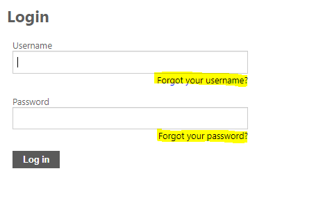 To retrieve a lost username or password, please proceed to the login page and select one of the following links 'Forgot Username / Password' - see screenshot below: